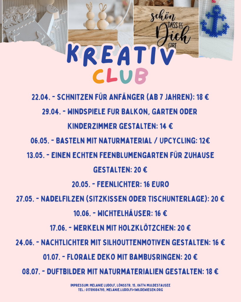 Das Programm für den Kreativ Club ab 22.04. steht fest.