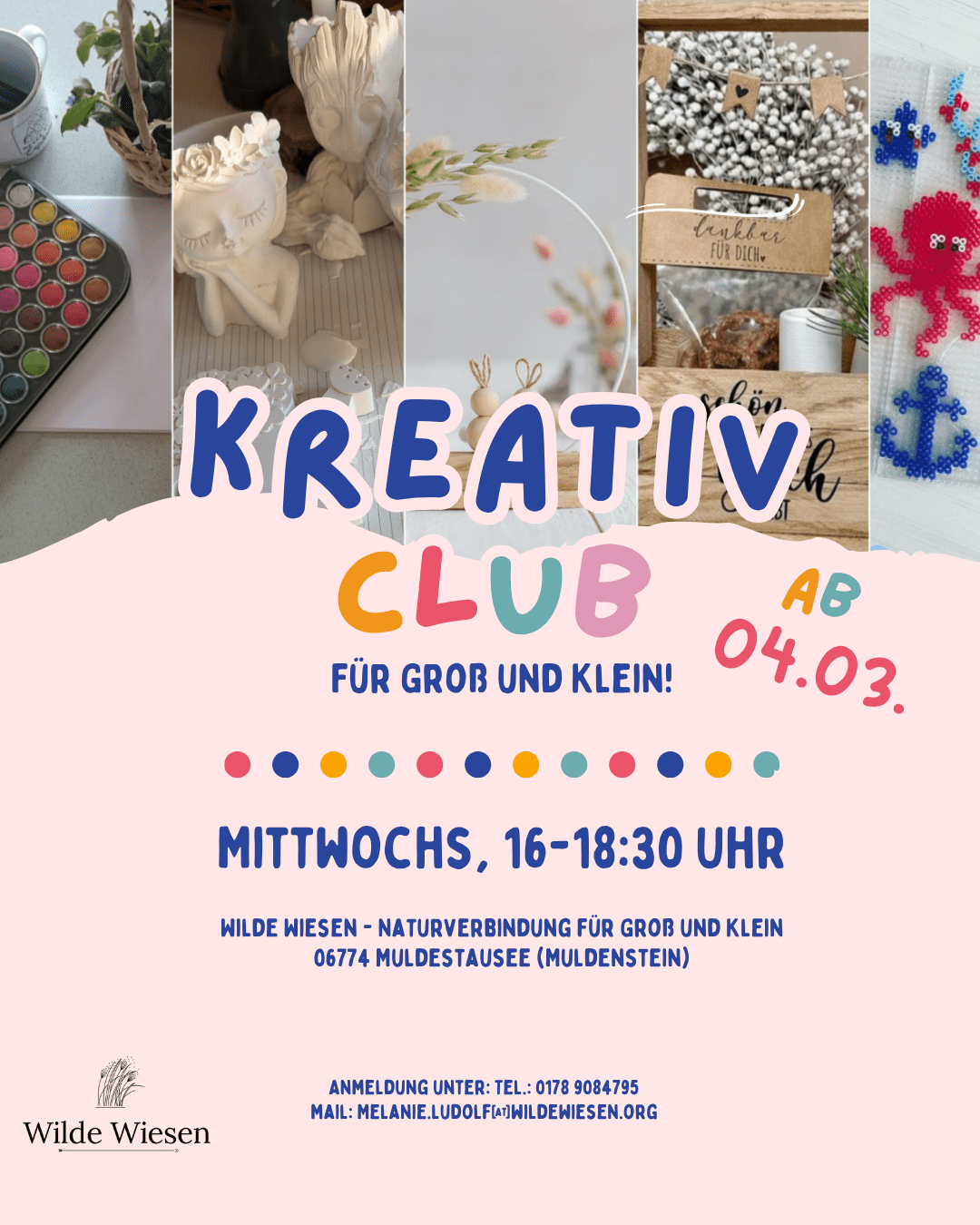 Ich freu mich auf eure Anmeldung unter: Tel.: 01789084795 oder per Mail: melanie.ludolf@wildewiesen.org