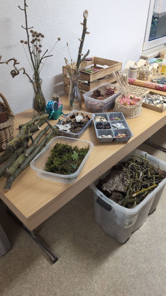 - Am Wochenende: Draußen einen Spaziergang machen, ein paar Kiefernnadeln oder Moos sammeln, sie zu Hause in eine kleine Schale legen.