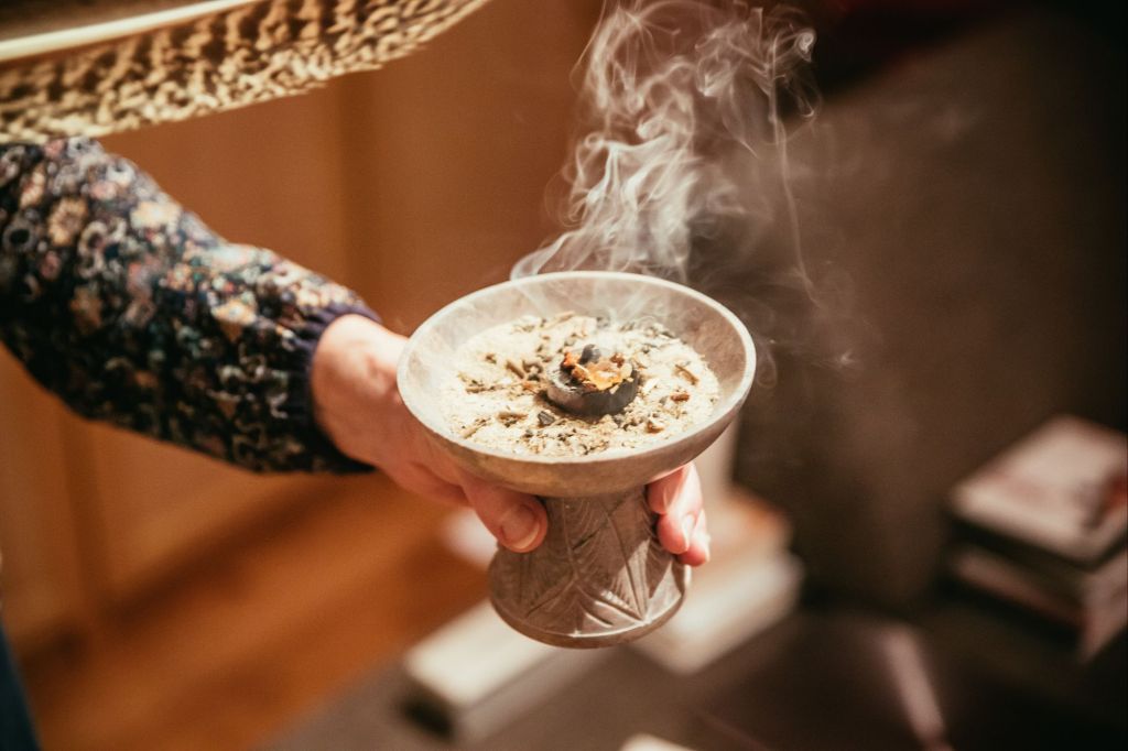 Wenn Harze, Kräuter oder Hölzer aufglimmen, verbindet sich das Element Feuer mit der Erde – der Duft wird zu Rauch, und Rauch steigt auf. Symbolisch und ganz real: etwas verwandelt sich.